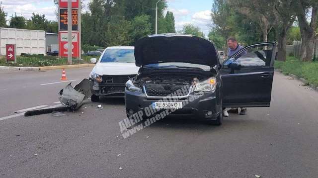 Авария случилась 3 сентября около 13:20. По предварительной информации, таксист Bolt на автомобиле Peugeot выезжал с заправки и решил развернуться, чтобы ехать по направлению к улице Рабочей. Но не учел дорожную обстановку и столкнулся с Subaru, который двигался в сторону Криворожского шоссе. В результате происшествия машины получили механические повреждения, но, к счастью, обошлось без пострадавших.