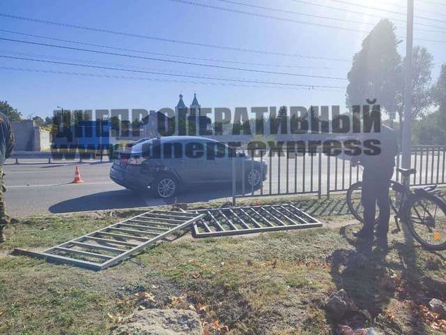 В Днепре за Кайдакским мостом автомобиль автошколы въехал в Ford, находившийся впереди. Помимо транспортных средств также сломан забор.
