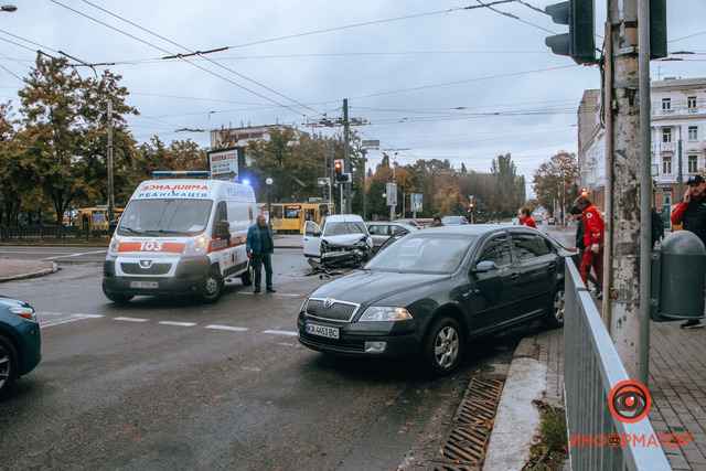 В Днепре на проспекте Яворницкого столкнулись Renault и Skoda: есть пострадавший (видео момента)