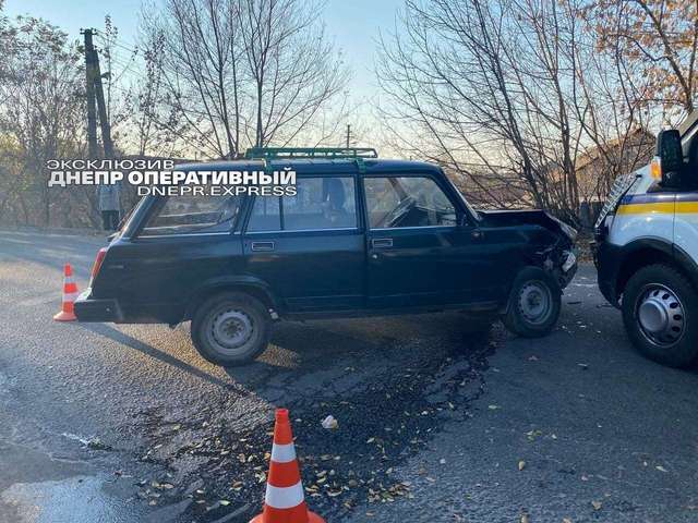В Днепре на перекрестке Отечественной и Желябова пожилая женщина, управлявшая автомобилем ВАЗ-21043 не уступила главную дорогу и спровоцировала столкновение с микроавтобусом Ford Transit, который принадлежит Национальной гвардии Украины.