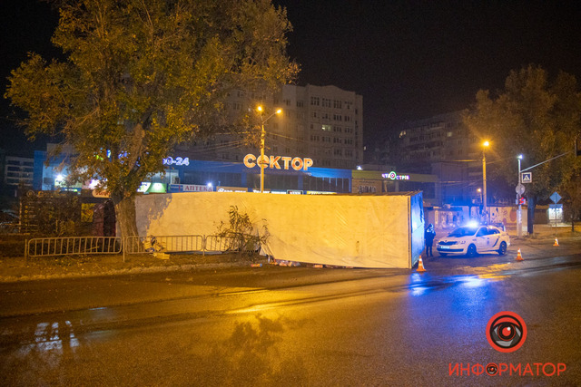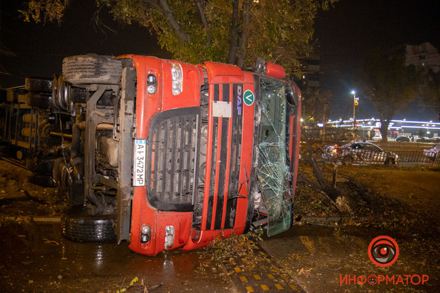 В Днепре на Донецком шоссе фура снесла ограждение и перевернулась