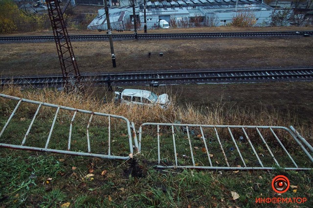 Об этом Информатор сообщает с места происшествия. По предварительной информации от патрульных, Lada заезжала на мост со стороны Мануйловского проспекта. На мокрых трамвайных рельсах автомобиль занесло, и Lada слетела с моста в кювет – к железнодорожным путям.