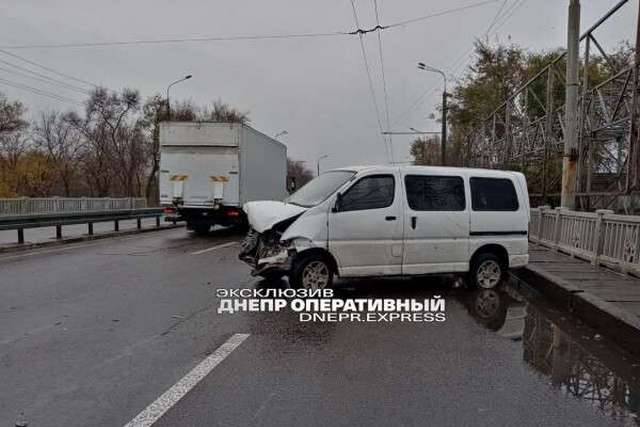 В Днепре на Набережной Заводской микроавтобус влетел в отбойник
