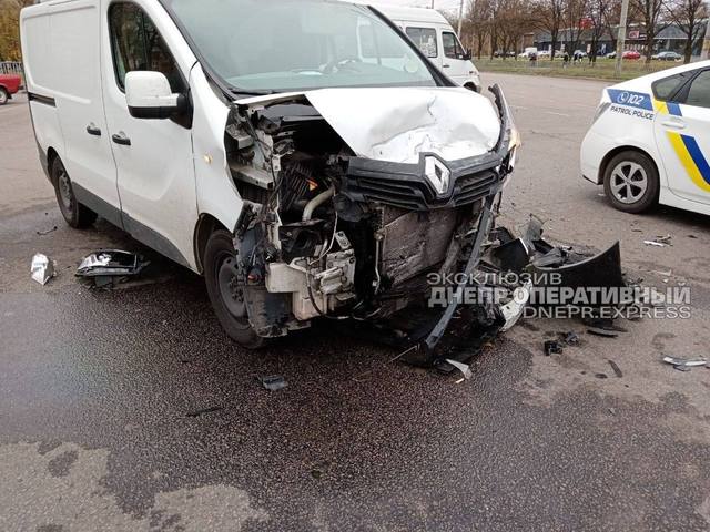 В Днепре на жилмассиве Тополь столкнулись Renault Trafic и Fiat Doblo.
