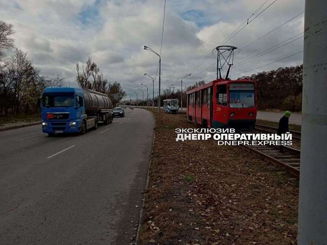 Транспортное средство, "припаркованное" на рельсах, парализовало движение трамваев в сторону левого берега.