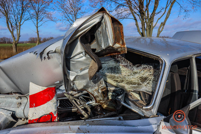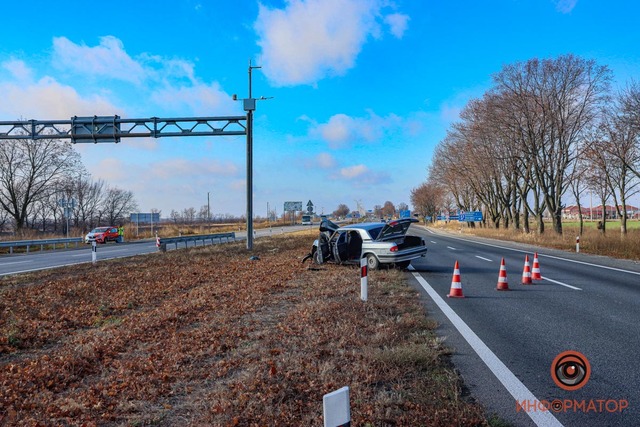 По предварительной информации, автомобиль двигался в сторону Кривого Рога. Водитель не справился с управлением и протаранил ограждение. Он пострадал, его увезла скорая.
