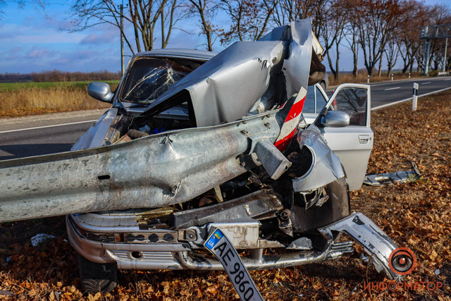 В пятницу, 12 ноября, около 7:00 на Криворожской трассе возле поворота на Сухачевку случилось ДТП. «Волга» влетела в ограждение.