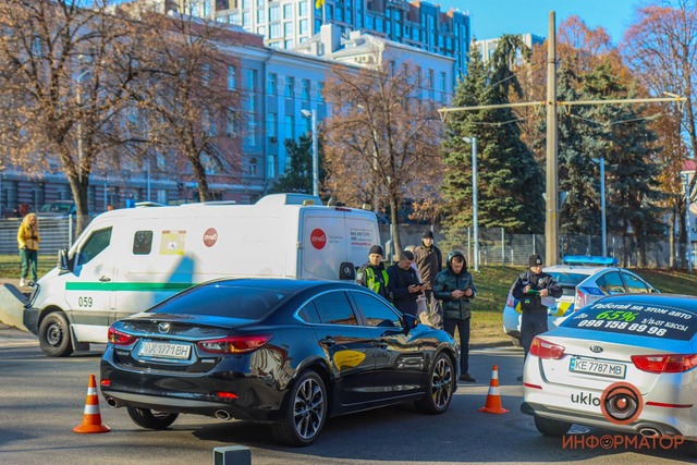 В субботу, 13 ноября, на перекрёстке Святослава Храброго и Троицкой случилось ДТП. Столкнулись инкассаторская машина и Mazda.