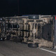 Судя по видео, водитель не справился с управлением, из-за чего Mercedes Sprinter ушёл в занос и врезался в отбойник. После удара микроавтобус лёг на бок.