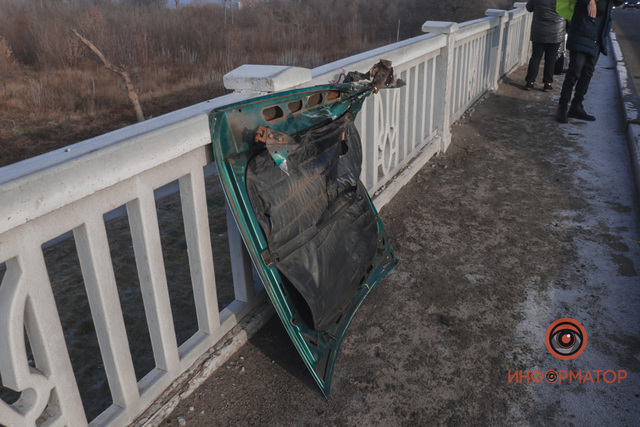 От удара автомобиль начал вращение и пролетел по виадуку несколько десятков метров. К счастью, водитель «Москвича» отделался легким испугом. На данный момент автокрана на месте происшествия нет — водители заключили «европротокол». Левая полоса на виадуке в сторону улицы Криворожской перекрыта. Собирается пробка.