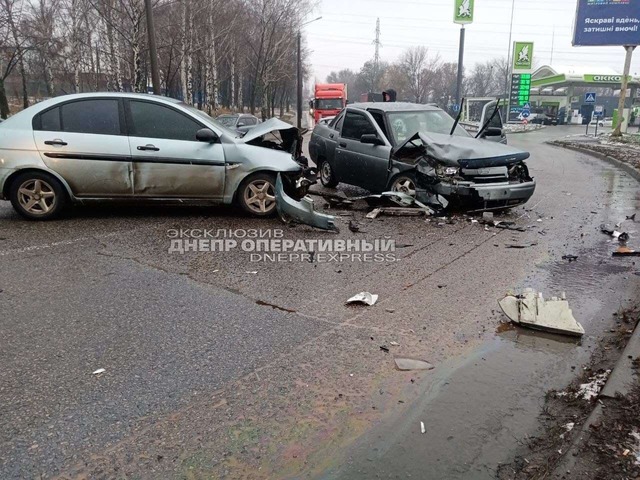 В Днепре на Космической произошло лобовое столкновение автомобилей Hyundai Accent и ВАЗ-2110. В результате аварии по предварительной информации пострадали 3 человека.