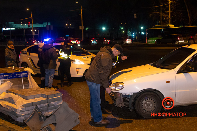 В Днепре на проспекте Богдана Хмельницкого пьяная женщина выскочила на дорогу: водитель Daewoo разбил машину, пытаясь ее не сбить