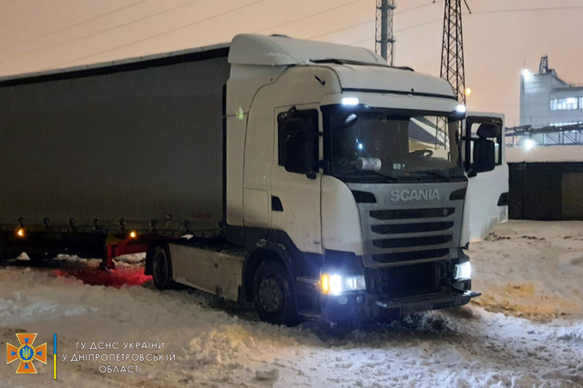 Как оказалась, в заносах застряли 5 грузовиков. Спасатели отбуксировали фуры к расчищенному участку дороги.