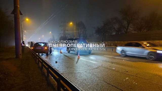 По Набережной Заводской в сторону Кайдакского моста двигалась фура Volvo и легковой автомобиль Kia. Водитель фуры, которая двигалась в правом ряду, в какой-то момент решил перестроиться и зацепил Kia, движущуюся левее. Машину от удара развернуло, и она отлетела в отбойник.
