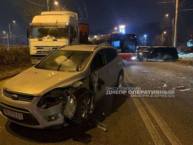 В Днепре на улице Марии Лисиченко произошло жесткое ДТП с участием автомобилей Ford Kuga и Toyota Land Cruiser. В результате аварии пострадало 3 человека.