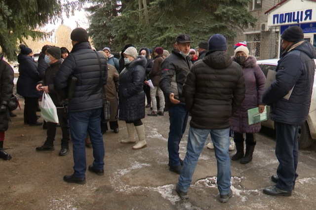 В Соленом около десятка людей митингуют возле отделения полиции, чтобы те ускорили расследование по банковской афере, история которой затянулась уже на более чем 10 лет.