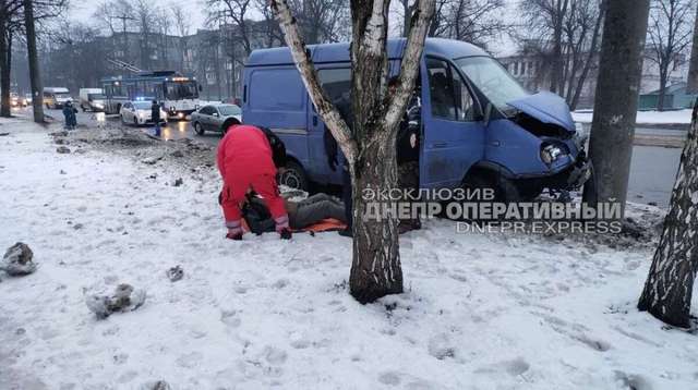 В Днепре водитель автомобиля Nissan при перестроении "подрезал" микроавтобус ГАЗ, в результате чего водитель "Газели", уходя от столкновения, врезался в столб. В аварии пострадали два человека.