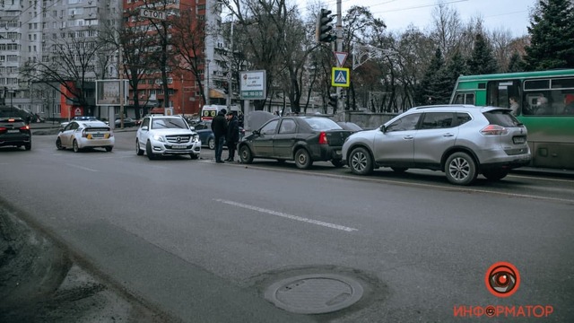В пятницу, 11 февраля, на перекрестке улиц Андрея Фабра и Святослава Храброго случилось ДТП. Здесь столкнулись Mercedes, Dacia и Nissan.