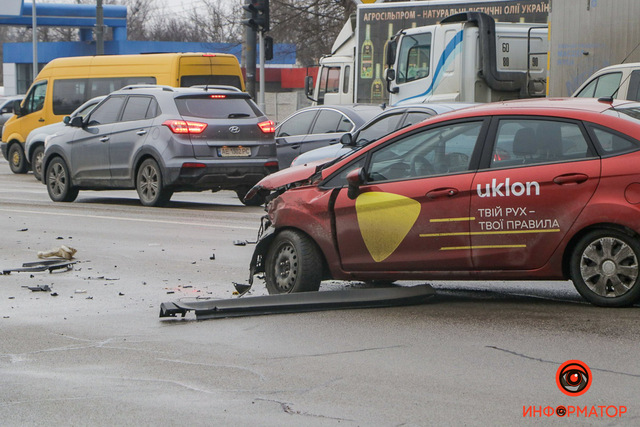 В субботу, 12 февраля, на Слобожанском проспекте случилось ДТП. Тут столкнулись BMW и такси Uklon.