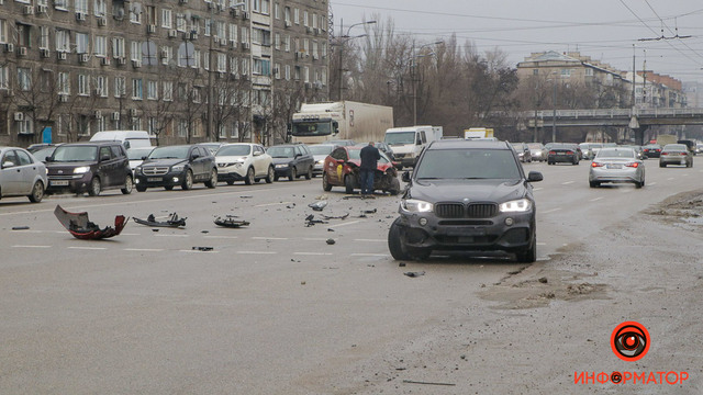 В Днепре на Слобожанском проспекте столкнулись BMW и такси Uklon: видео момента