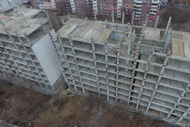 В конце 2000х жители города вложились в перспективную стройку на ж/м Победа, а потом она прекратилась. Теперь же непостроенное здание продают и, возможно, достроят.