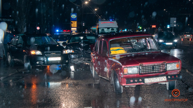 По предварительной информации от сотрудников патрульной полиции, автомобиль ВАЗ выехал с парковки возле магазина «АТБ» и влился в поток машин. За ним по направлению в сторону Мандрыковской ехали Chevrolet Lacetti и Chevrolet Aveo. В какой-то момент автомобили столкнулись. Предварительно, у ВАЗ могли не работать фары.