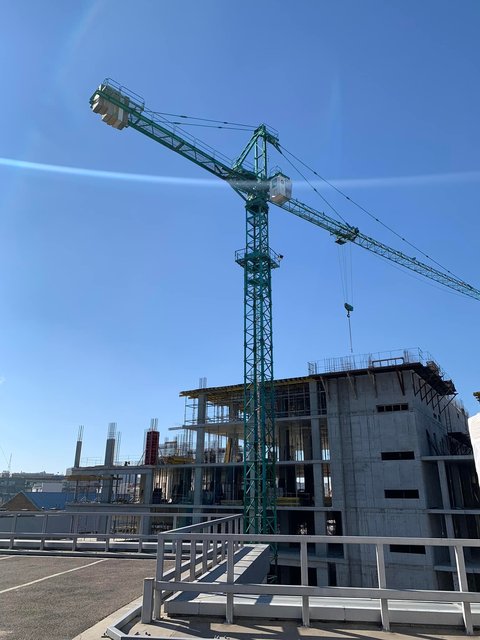 Нужно сказать, что одна часть специалистов параллельно приступила к работе над 7-м этажом "Перекрестка" (его высотной части), начала кирпичную и газобетонную кладку. Другая их часть уже принялась устанавливать вентиляцию на цокольном (подпольном) и 1-м этажах.