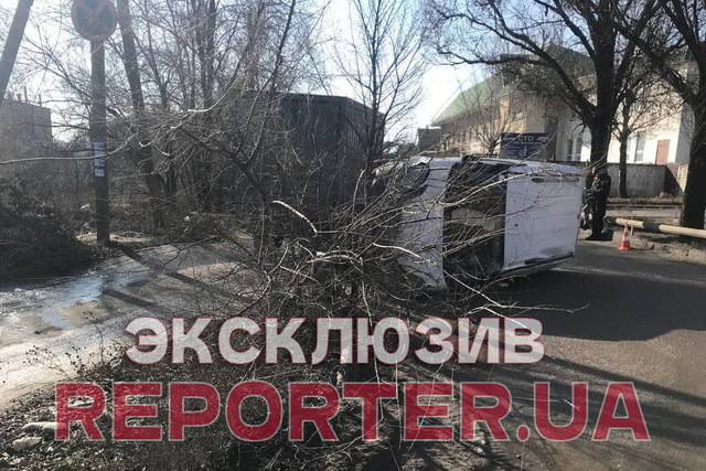Сегодня, 23 февраля, на ул. Днепросталевской произошло столкновение между микроавтобусом и легковым автомобилем. В результате столкновения легковушка перевернулась на бок, а ее водитель получил травмы.