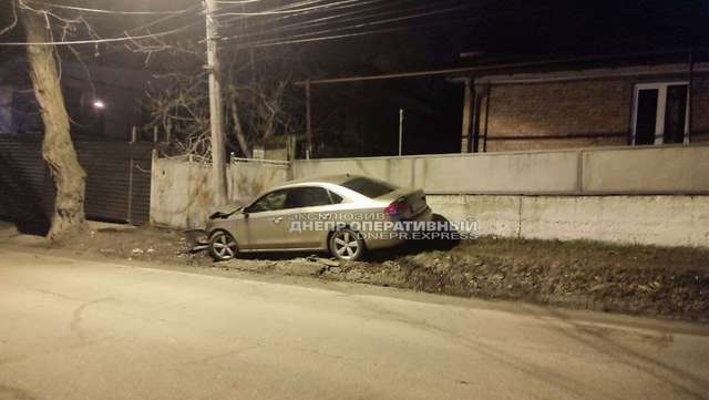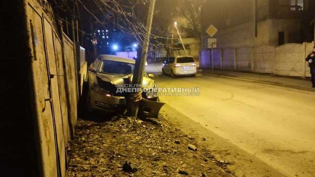 23 февраля в Днепре на улице Тихвинской автомобиль Volkswagen Passat влетел в столб.