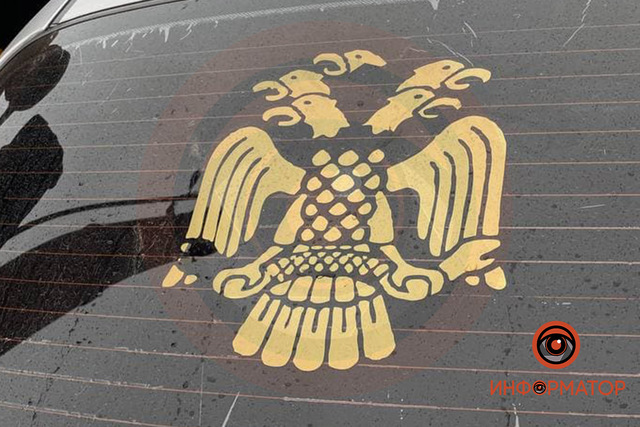 В пятницу, 25 февраля, примерно в 8:00 в полицию Днепра сообщили о подозрительном мужчине, который находился на Запорожском шоссе возле одного из жилых комплексов. На стекле автомобиля Daewoo мужчины жители дома заметили наклейку, похожую на двуглавого орла страны-оккупанта.