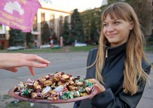 1 октября в Днепропетровске на площади им. Ленина прошла акция «Угости кандидатов в мэры Днепропетровска конфеткой».