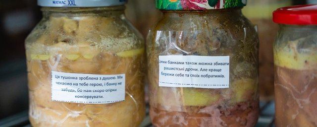 В Днепре одна из сетей ресторанов готовит еду для военнослужащих, переселенцев и волонтеров и тушенку для бойцов на фронт. По словам бренд-шефа сети ресторанов Антона Поздеева, производят более 300 кг тушенки в день.