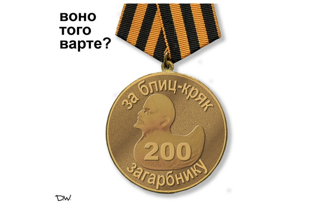«Російці так полюбляють нагороди та відзнаки..Цифра на аверсе медали красноречиво показывает, кого из оккупантов и в каком состоянии надо наградить такой медалью.. Але єдина нагорода яку отримають загарбники зайшовши на нашу Святу землю - буде оця мЄдалька. То хай так і буде!