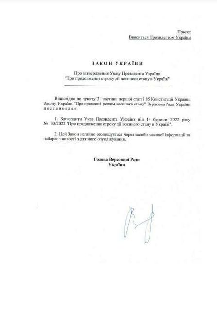 Верховная Рада поддержала законопроект о продлении срока действия военного положения на 30 дней с 26 марта 2022 года.