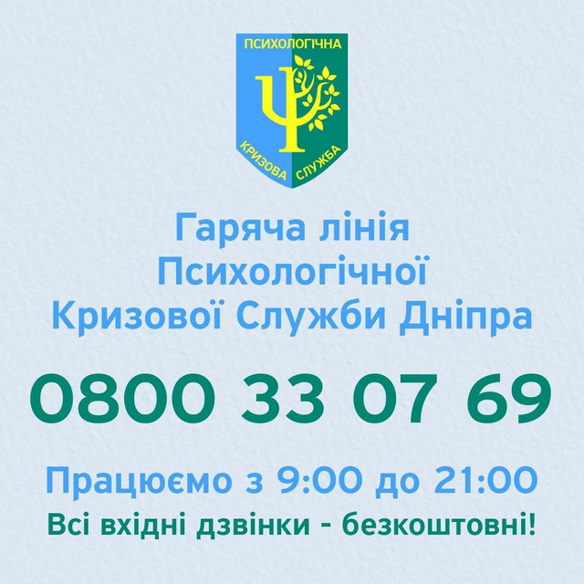 0 800 33 07 69 - в Днепре работает горячая линия для всей Украины.