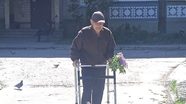 Олег Ефимович – один из оставшихся и продолжает жить в обстрелянных домах. Говорит: живет здесь с момента, когда здание построили.
