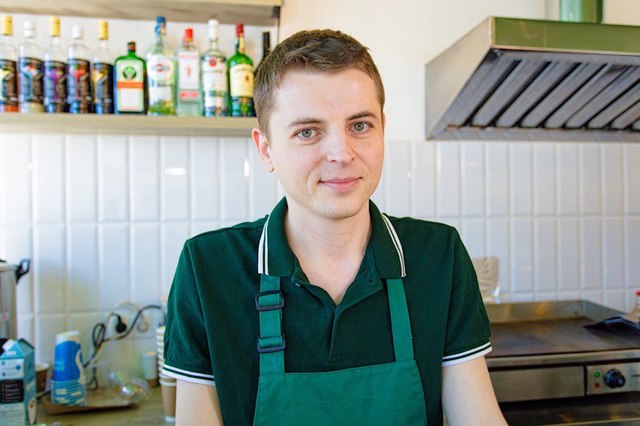 Бариста Дмитрий Иванченко в профессии уже более 7 лет. Раньше работал барменом в ресторане. Но больше по душе готовить именно кофе. Говорит, нравится создавать людям позитивное настроение, просто «нарисовав» сливками узор.