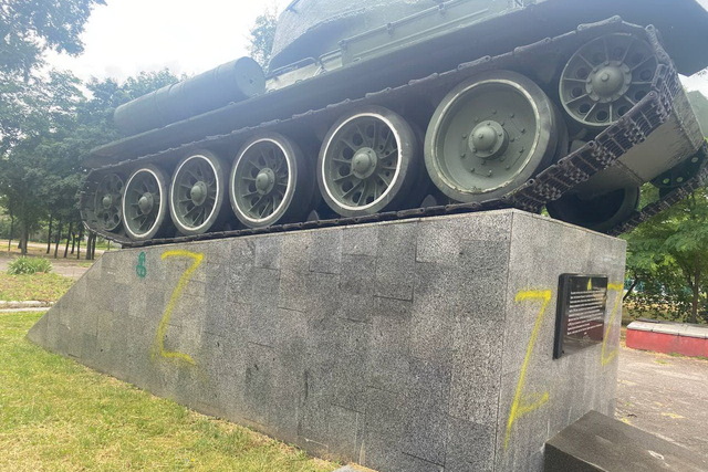 В Днепре на мемориале погибшим бойцам Второй мировой войны и войны с Россией кто-то нарисовал российскую свастику - букву Z.