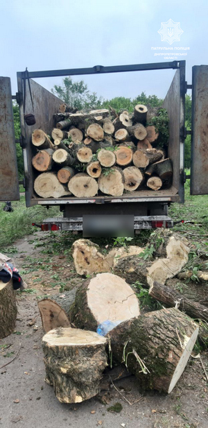 Під час патрулювання Дніпровським районом працівники роти з обслуговування водних об'єктів виявили двох чоловіків, що спилювали дерева за допомогою бензопил. Неподалік стояли дві вантажівки зі свіжоспиляною деревиною.