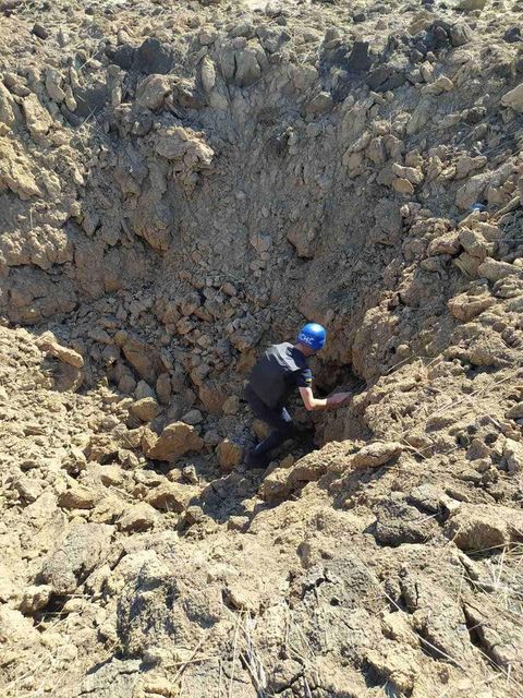 Кроме того, в поле в Синельниковском районе спасатели обнаружили воронку от ракеты. Диаметр воронки 5,5м, глубина – 5м. Рядом обнаружены безопасные ракетные обломки. К счастью, люди не пострадали.