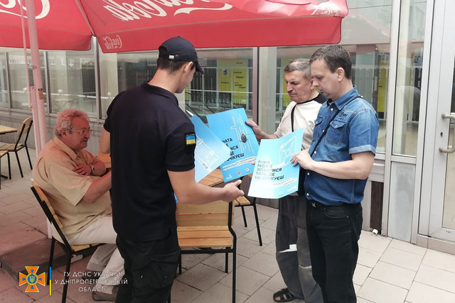 Сегодня, 21 июля, инспекторы отдела предотвращения чрезвычайных ситуаций Днепровского районного управления Главного управления ГСЧС Украины в Днепропетровской области провели беседы относительно действий в случае сигнала «Внимание! Воздушная тревога», в торговом центре «Мириада» и объяснили людям порядок действий при обнаружении взрывоопасных предметов.