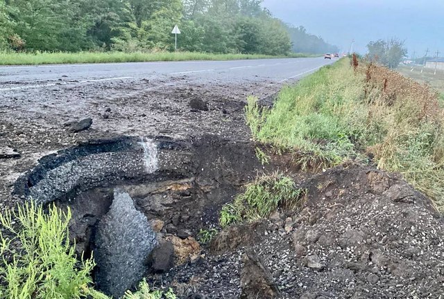 Российские снаряды попали и в недавно отремонтированную Никопольскую трассу – там образовались воронки.