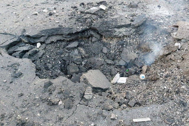 Движение транспорта перекрыто в районе въезда в Кривой Рог со стороны Днепра в связи с ночными ракетными ударами. В результате обстрела осталась воронка в асфальте.
