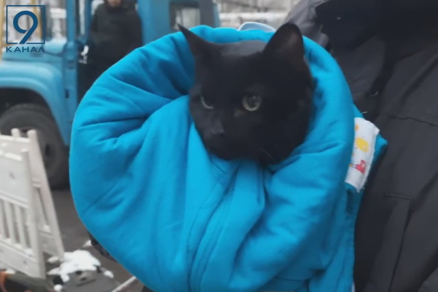 Черная кошка пробыла сама в холодной разрушенной квартире две с половиной недели, без еды и воды. Но вчера она, наконец, была спасена.