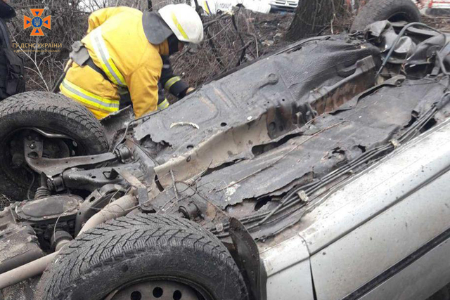 26 февраля в 12:43 в Службу спасения «101» поступило сообщение о том, что в результате дорожно-транспортного происшествия произошедшего на улице Привольная Южного района города Каменское, водителя зажало внутри опрокинутой легковушки.