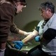 На наступній світлині – медик Людмила. Фото зроблено у Бахмутському стабілізаційному пункті, коли туди привезли важкопораненого. Воїн втратив багато крові, і його життя трималося на волосині. Людмила стала донором крові для цього бійця. Виявилося, що для медиків стабпункту – це звична справа. Вони постійно перевіряються, щоб у випадку крайньої необхідності здати кров для важкопоранених. Людмила дуже скромна, і не вважає свій вчинок героїчним. Каже: «Герої – це там, на передовій. А ми просто допомагаємо їм вижити».