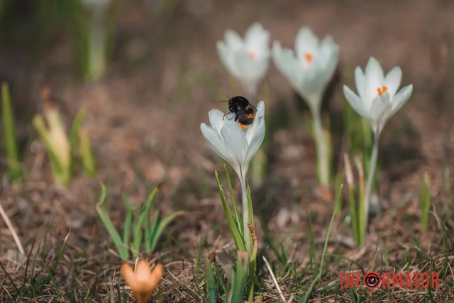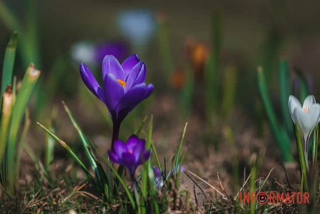 У Дніпрі на Набережній Перемоги розквітли крокуси. Ці квітки символізують прихід весни.
