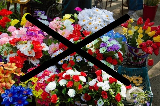 Закапывать их тоже нет смысла, потому что они не гниют. Опять же: это вред окружающей среде и людям. В конце концов, в сегодняшние трудные экономические времена вряд ли логично тратить деньги на искусственные украшения, которые быстро потеряют свой вид и станут мусором.