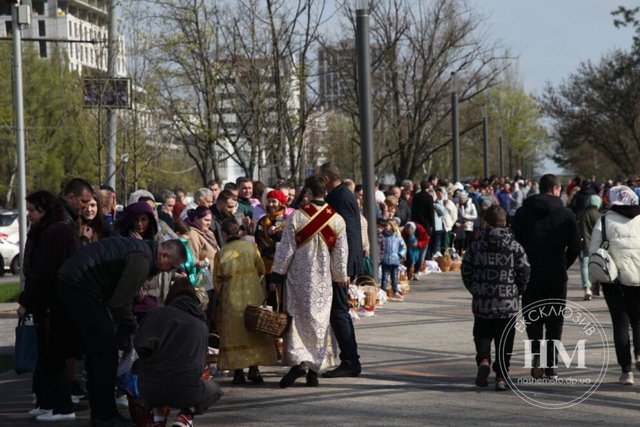 У 2023 році 16 квітня вся Україна відзначає Великдень – найдавніше християнське свято. Сьогодні до храмів Дніпра прийшли тисячі містян, аби освятити свої великодні кошики. Біля храму в честь Св. апостола Андрея Первозванного, що на Набережній Перемоги, зібралося чимало людей.