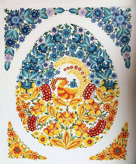 Покровчанка Алина Щетникова — автор прекрасных полотен в технике петриковской росписи.